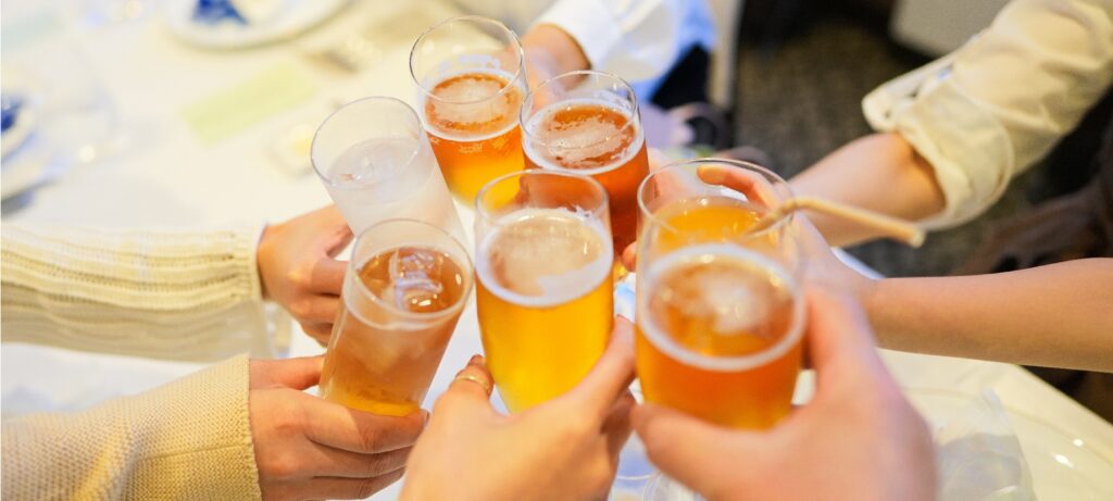 ビール、ワイン(赤・白)、ウイスキー、焼酎、カクテル4種、
