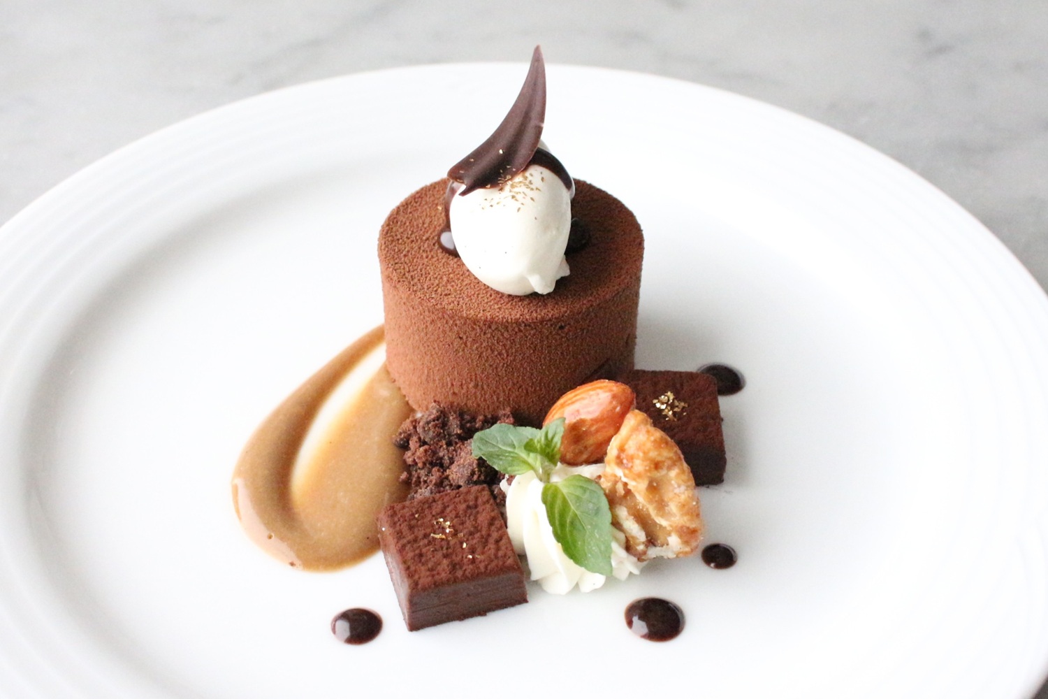 マスカルポーネのクリームとコニャック香るパヴェショコラを添えて
