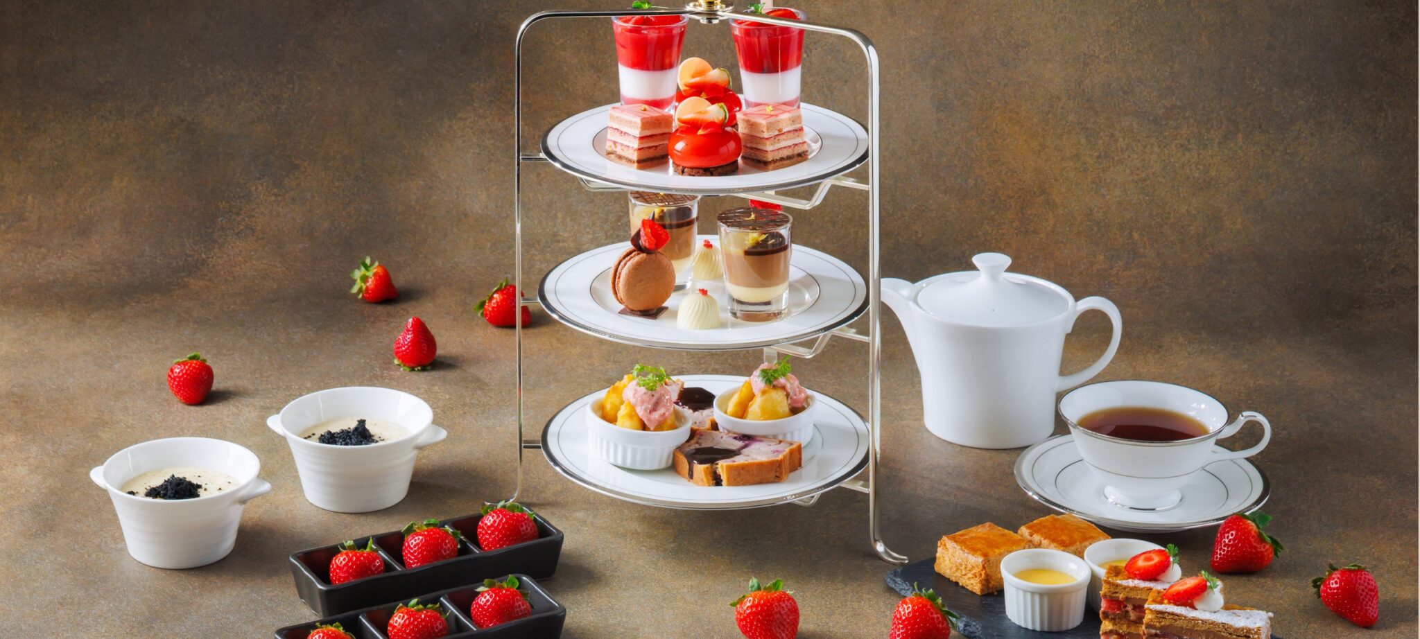 みずみずしく甘酸っぱい苺と、チョコレートを使用した12種類のスイーツ・セイボリーをお愉しみください