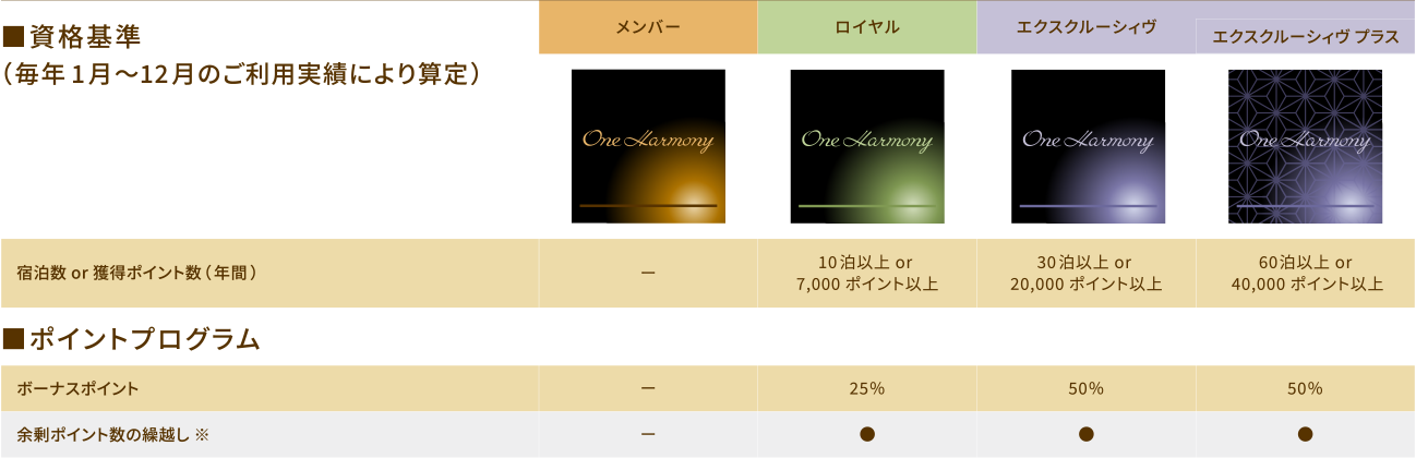 | メンバー | ロイヤル | エクスクルーシィブ | エクスクルーシィブプラス | |