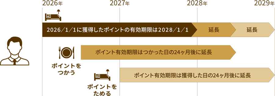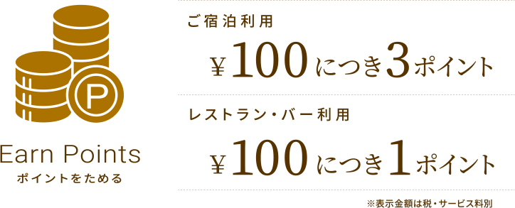 ※ポイントの積算方法ならびにポイント数は、ホテル・施設・ご利用プランにより異なる場合がございます。