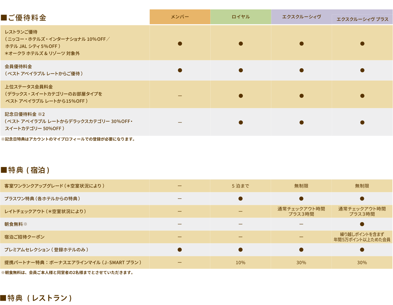 | メンバー | ロイヤル | エクスクルーシィブ | エクスクルーシィブ プラス |