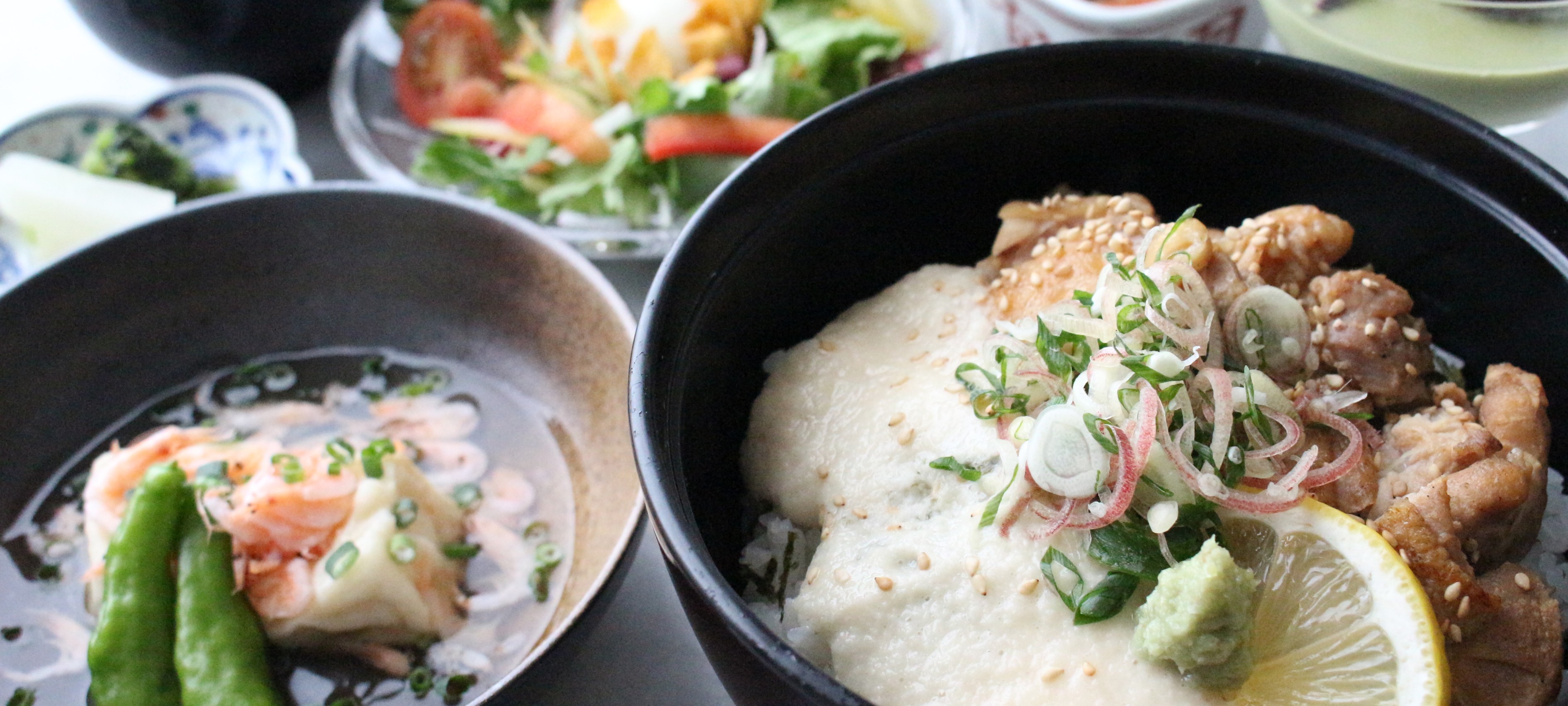 ― 8種野菜と自家製ドレッシングのトスサラダ、スープ、プチデザート、ドリンクバー付 ―