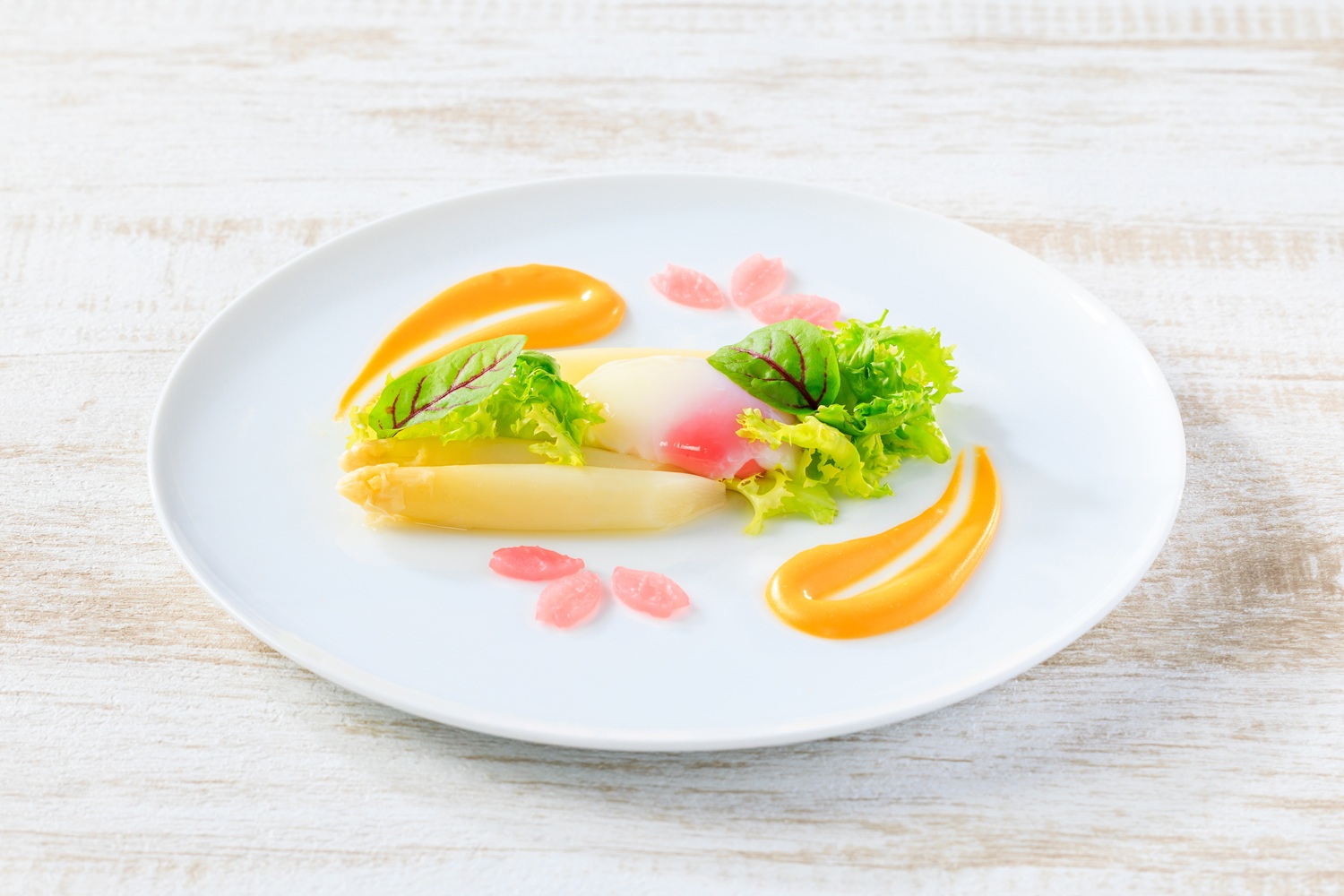 🌸ホワイトアスパラと立川産卵の温度卵のチーズソース +700円