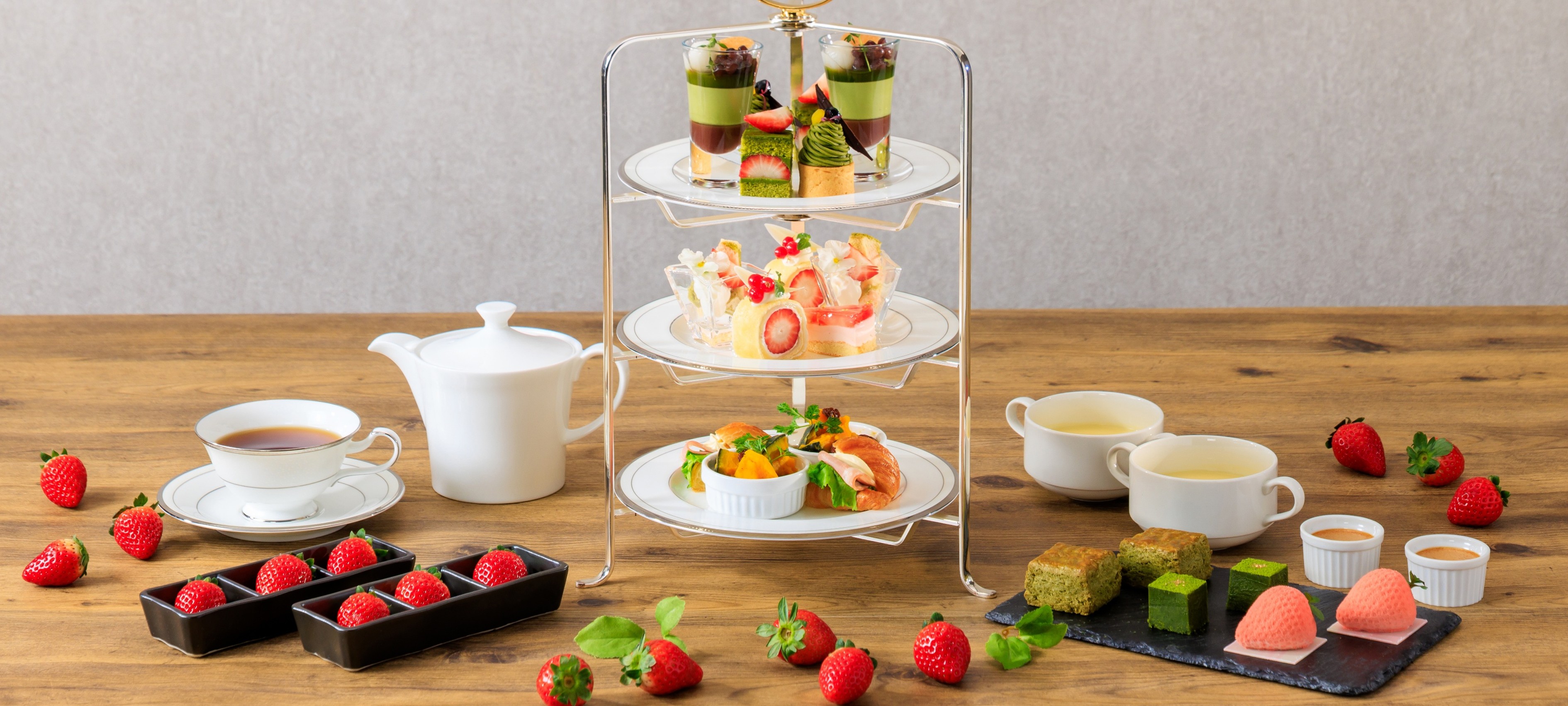 甘酸っぱい苺とほのかな苦みが美味しい抹茶をテーマに、春らしさ溢れる品々をご用意します