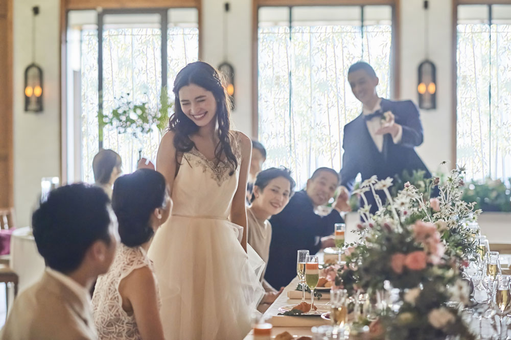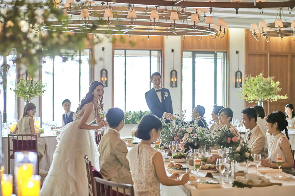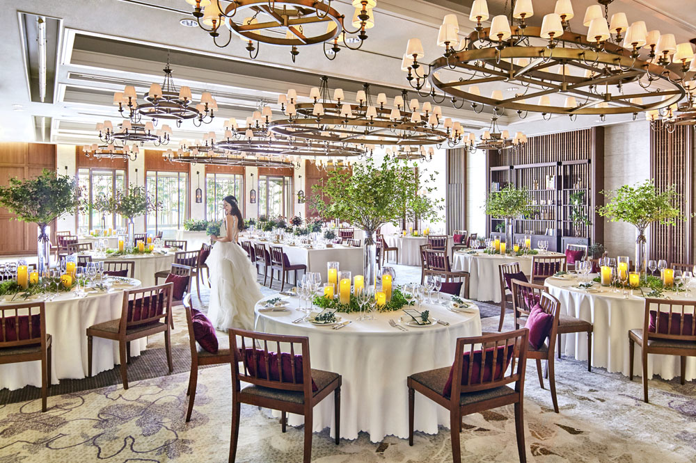 大航海時代の貴族邸宅をイメージした、バンケットルーム「マグノリア」。 絢爛なシャンデリアと、大きな窓から差し込む自然の光がおふたりとゲストを優しく照らします。