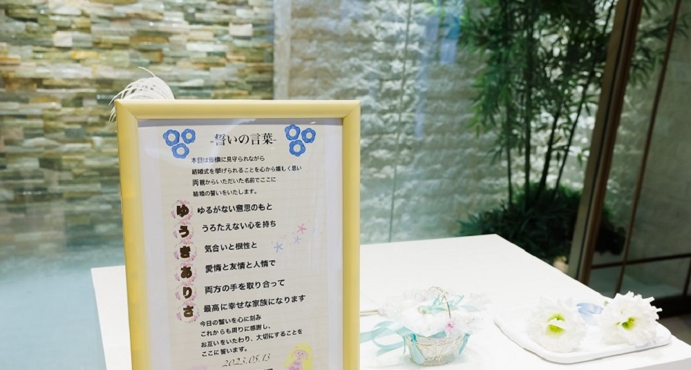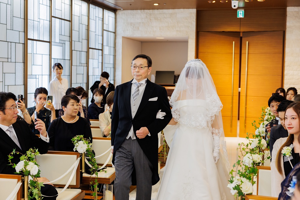 私たちは人前式をやりたい!と思っていたのですが 正直どう進めるか悩んでいました。 しかしちゃんと人前式のプランがあり プランに沿いながらも、自分たちのオリジナルの宣言を 入れることで自分たちらしさを表現することができました。 一つ一つの演出がとても良かったです。 人前式ですが、父との憧れのバージンロードを 一緒に歩くという夢も叶えられました。 神聖な雰囲気もありますが 挙式もアットホームな感じで進めることができました。
