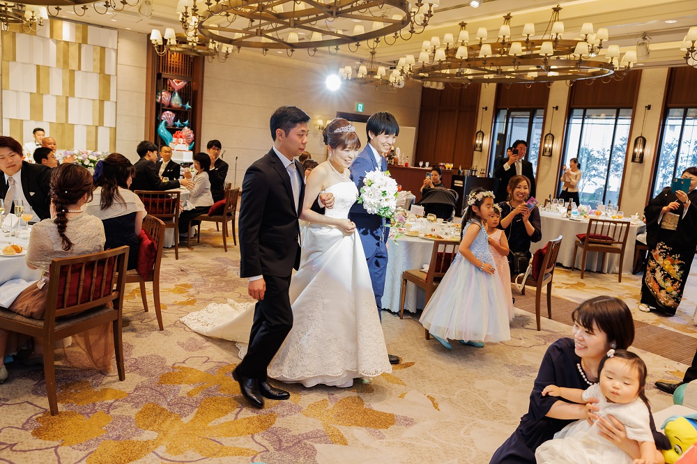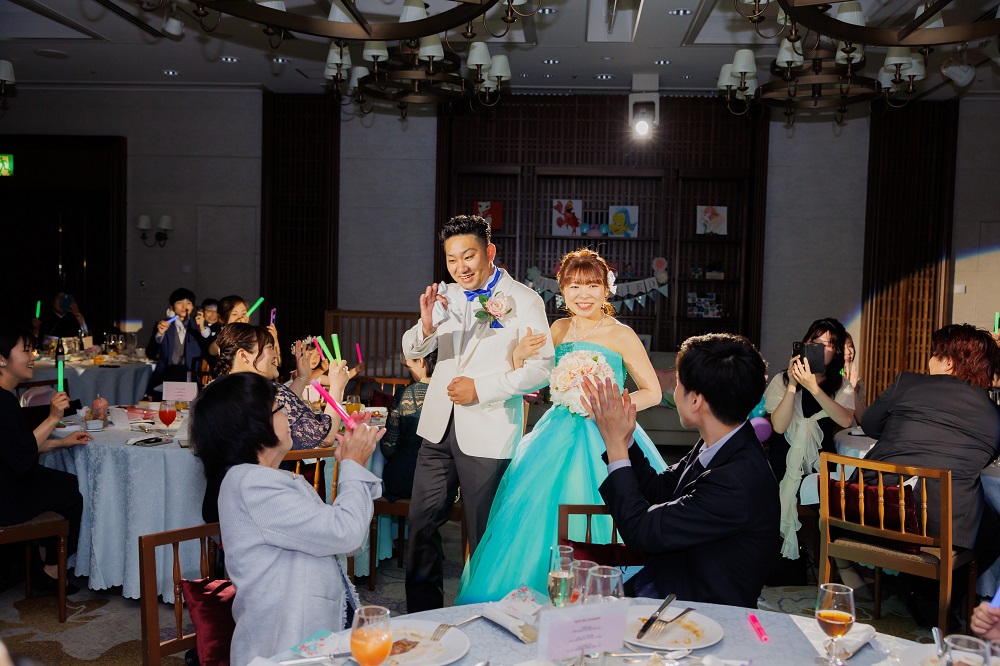 会場に入場した際に初めて完成した全体像を みたのですが、もう想像以上に素敵でした。 新郎が高砂後ろの装飾を担当したのですが 問題だった風船も上手く飾ることができ 全体の装飾やテーブルコーディネート・装花 全てがアリエルの世界観を表現することが できていてとても素晴らしかったです。 プランナーさんのセンスもすごくよく 伝えていた世界観を理解していただけました。 ゲストとの距離も思ってたよりも近く たくさん交流することができ 思い描いていたアットホームな披露宴を行うことができました。 進行面もキャプテンや介添の方が常に一緒にいてくださいますし プランナーさんがいてくれる という心強さで身を任せ滞りなく行うことができました。