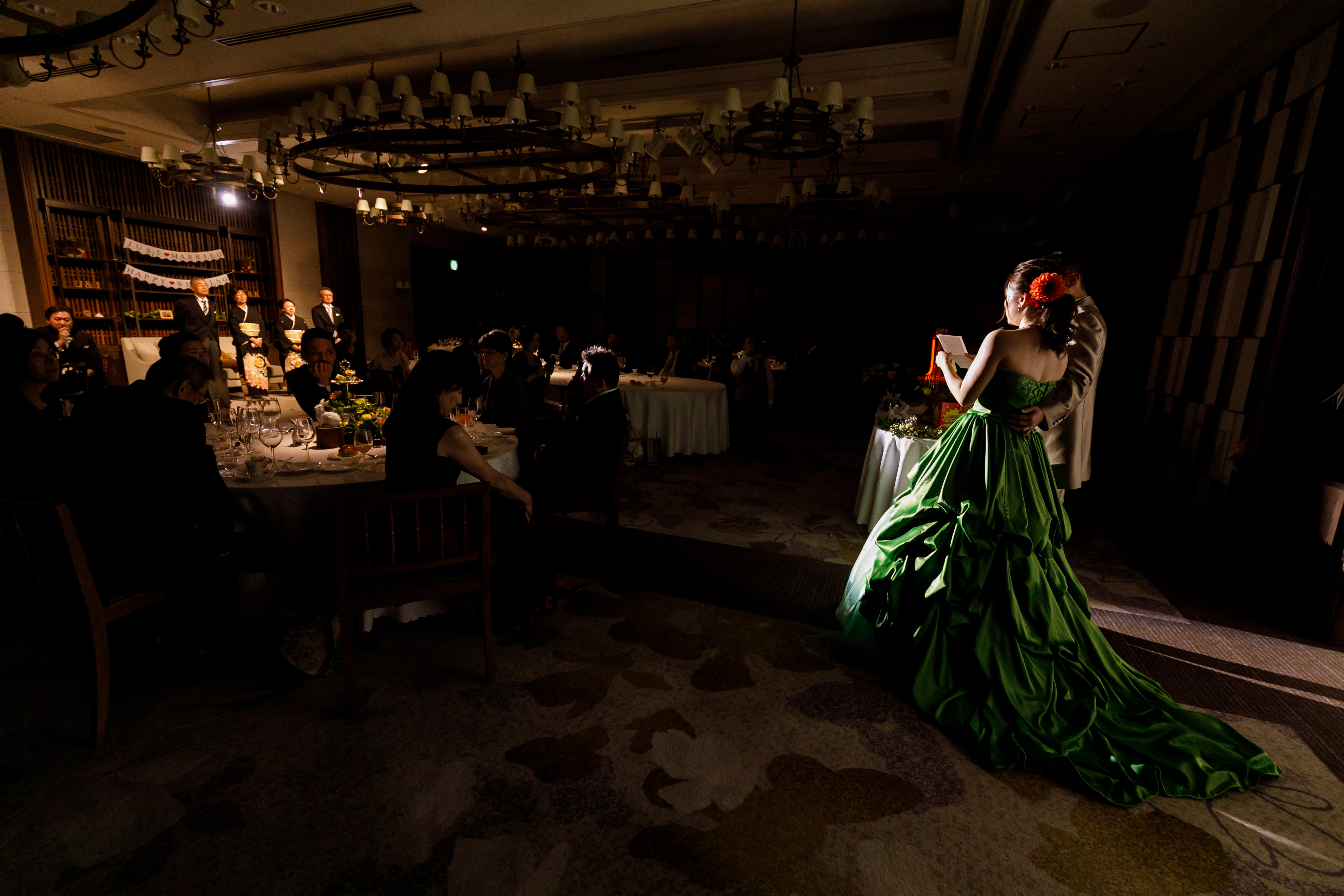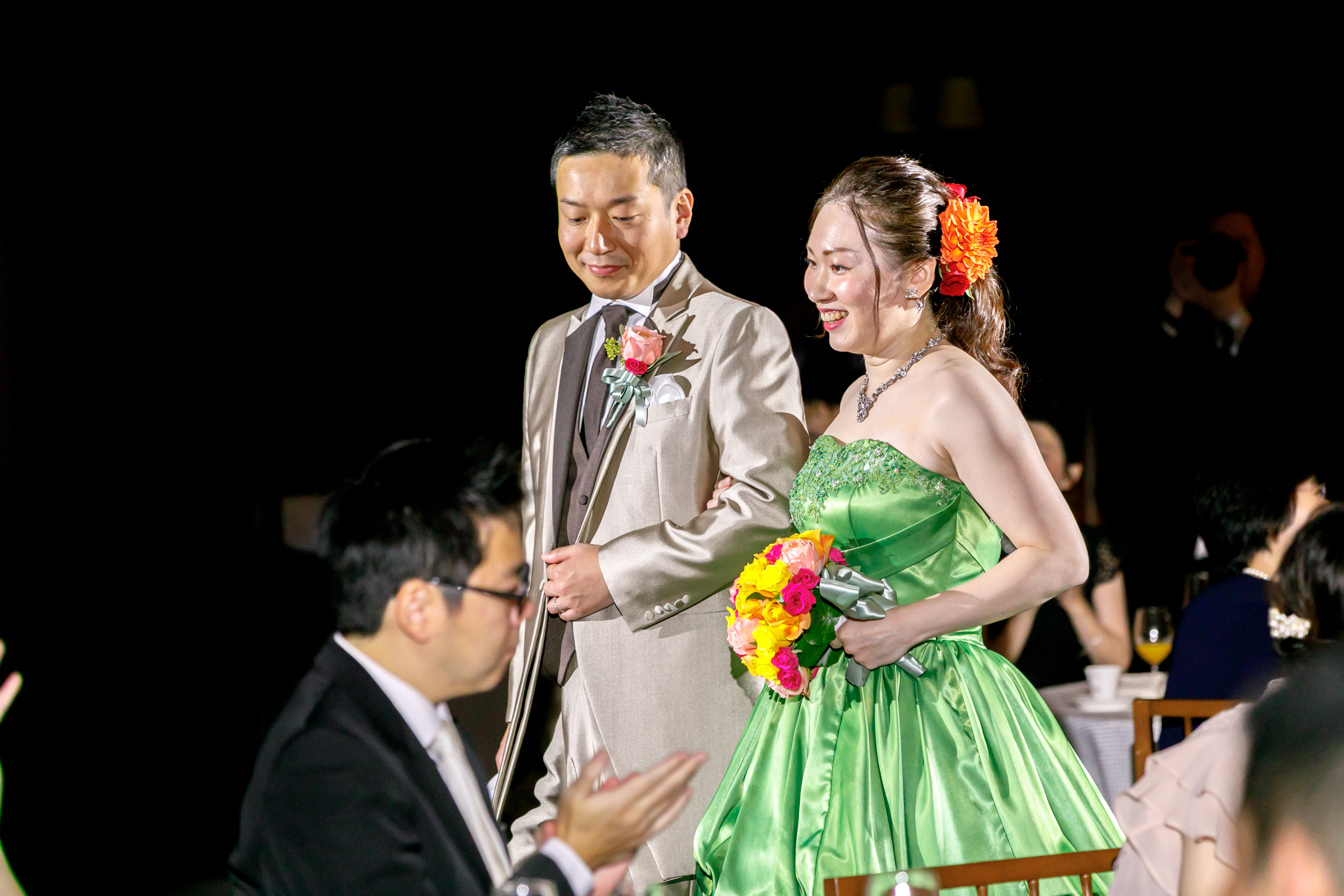 準備期間のことを考えると、当日は本当にあっという間でした。でもゲスト一人一人とお話ししたり写真を撮ったりする時間が比較的多めにとれたので、ゲストの皆様にはゆったりすごしてもらえたと思います。披露宴が終わったときには充実感と脱力感(笑)が押し寄せ、ほっとしました。
