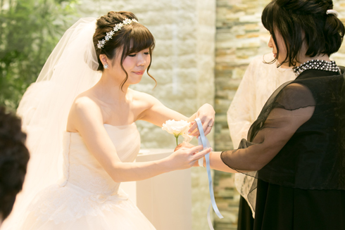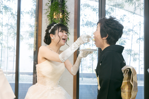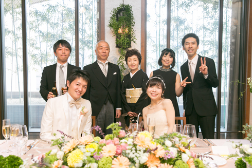 親族のみでの挙式・披露宴にしたため、ゲストの皆様に日頃の感謝の気持ちを伝えることを重視しました。 挙式を人前式のスタイルにすることで、自分たちらしい誓いの言葉を聞いてもらいたいと思いました。 また、披露宴はゲストの皆様にリラックスしていただける空間にしたいとお伝えしました。