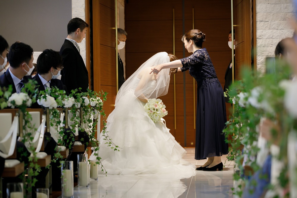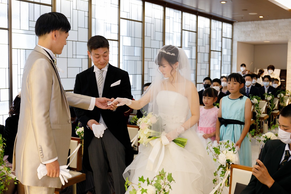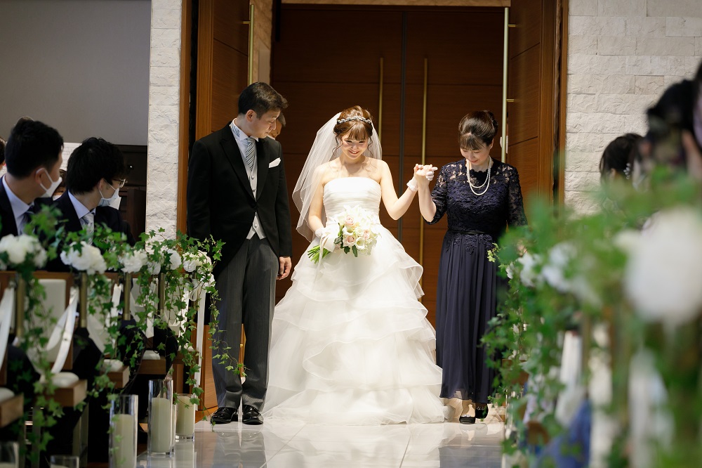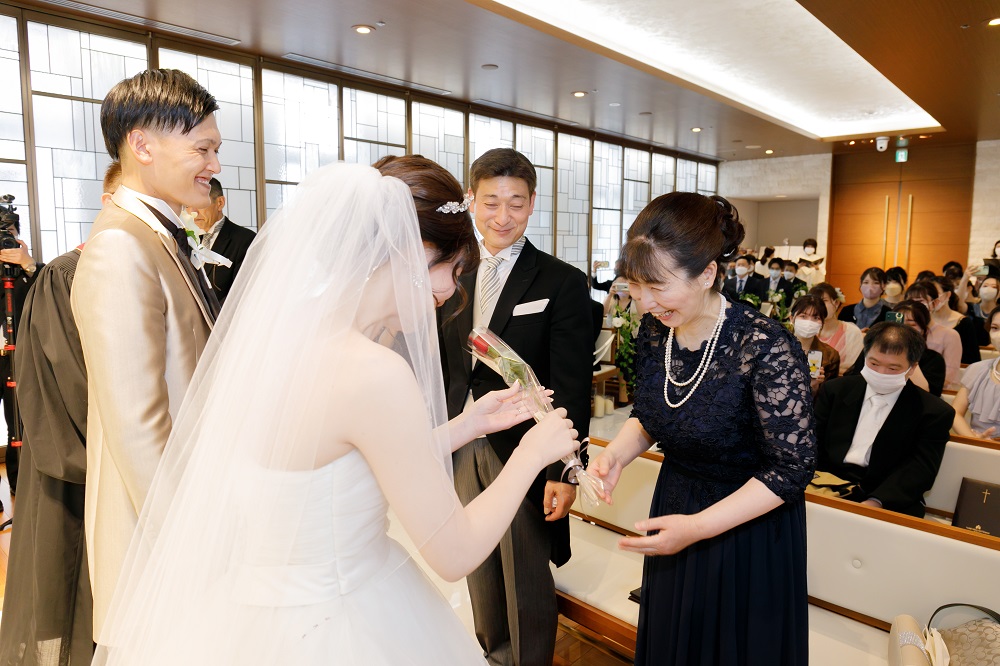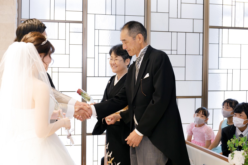 緊張で挙式の流れが不安でしたが側でサポートしてくださる方が常にいてくれて安心しました。 また、前からフラワーシャワーに憧れがあったのでお願いをしたところ、 快く引き受けていただきました。 ファミリーブレッシングでは今までお世話になった両親への感謝の気持ちを伝える事ができて本当に良かったです。