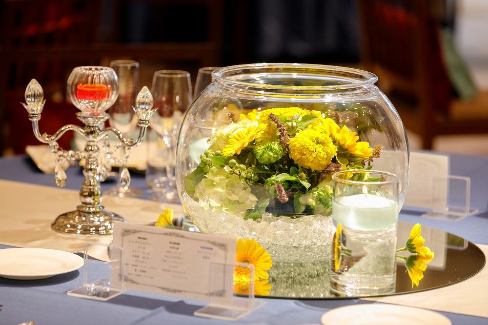 参列していただいた方々の思い出にも残るひと時を過ごしてもらうために 会場の装飾やイベント、たくさんのコースから選べるおいしい料理などに こだわりました。
