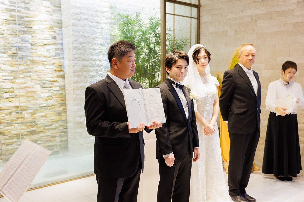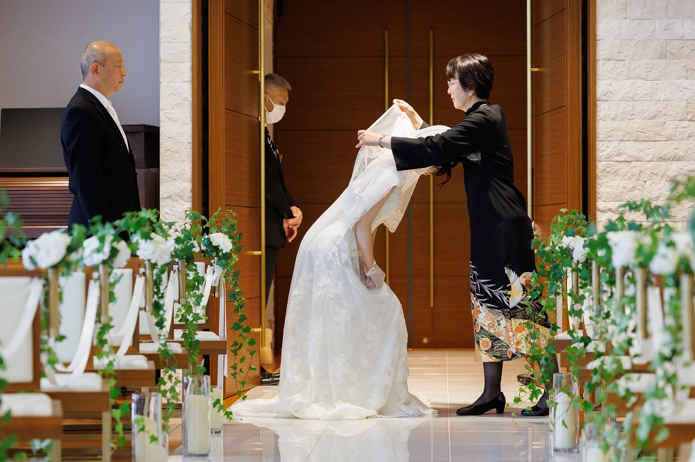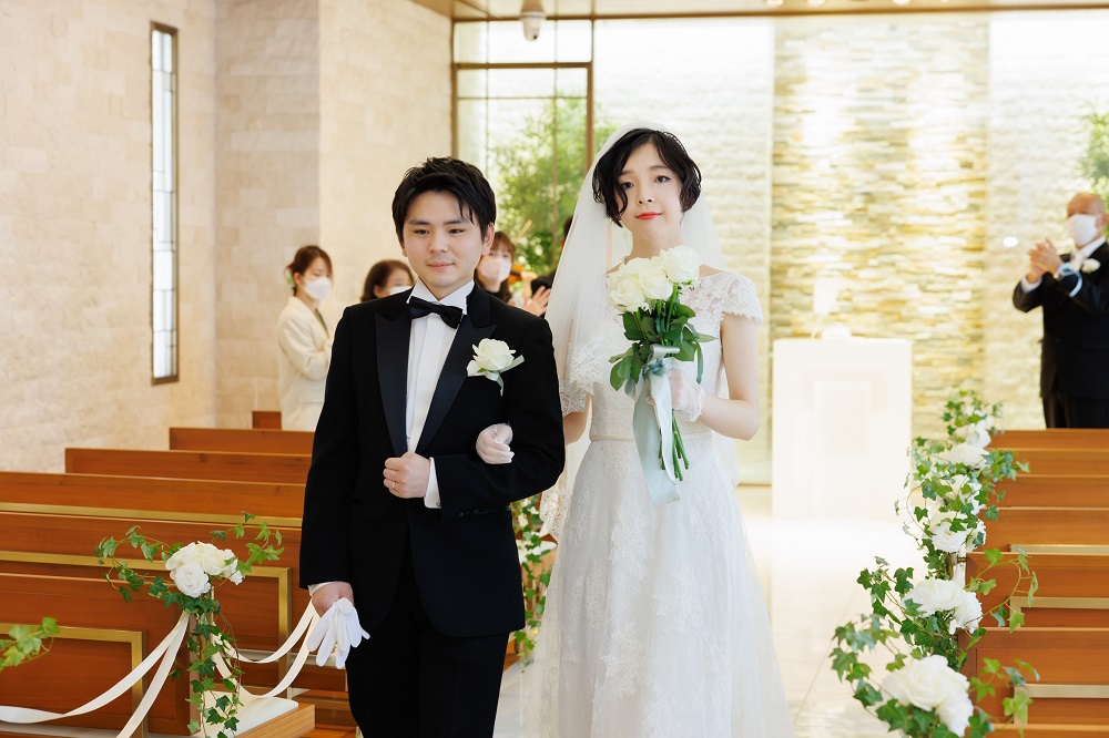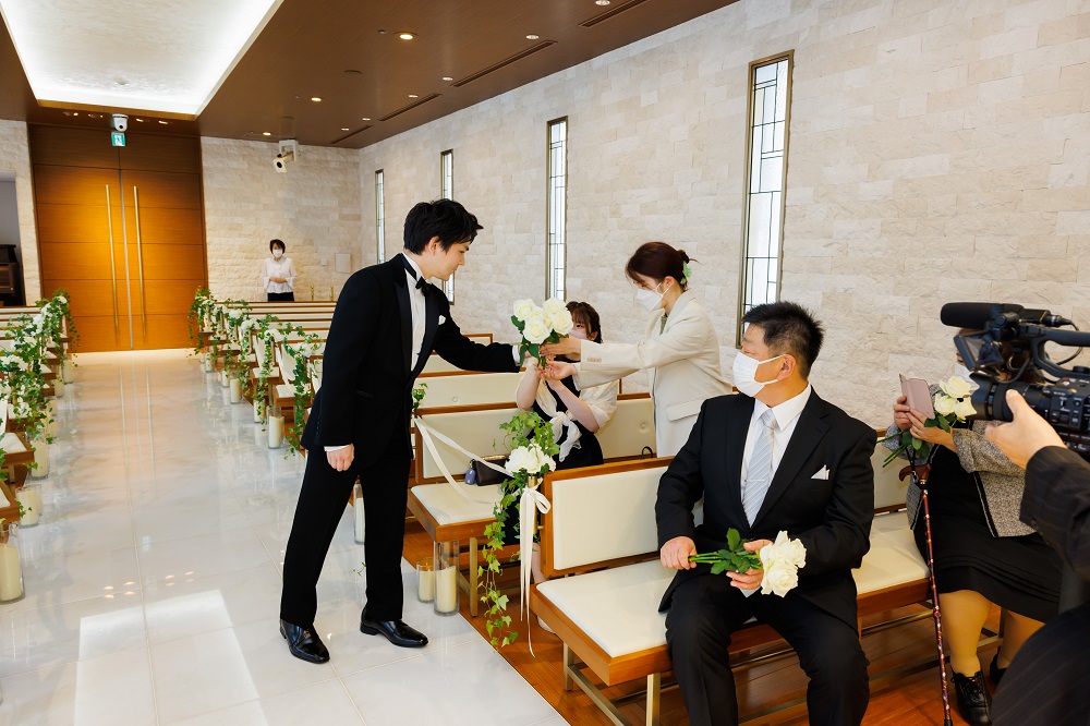 当日新郎が腕を骨折した状態で挙式、披露宴に臨んでいましたが 事前に伝えていた事もあり様々な配慮をしてくださいました。 タキシードに着替える時の手伝いや写真撮影のポージング 披露宴に出る料理を事前にカットしておいてくれるなど 各担当で情報が共有されてサポートしてくれたので、問題なく披露宴に臨めました。 素晴らしい対応力だと思いました。両家親族のみの挙式で8名程でしたが とてもアットホームで良い式になったと感じました。 最初は自分が今まで参加してきた大人数での挙式のイメージしか無かったので不安でしたが いざ始まるとあまりそういった不安は感じませんでした。